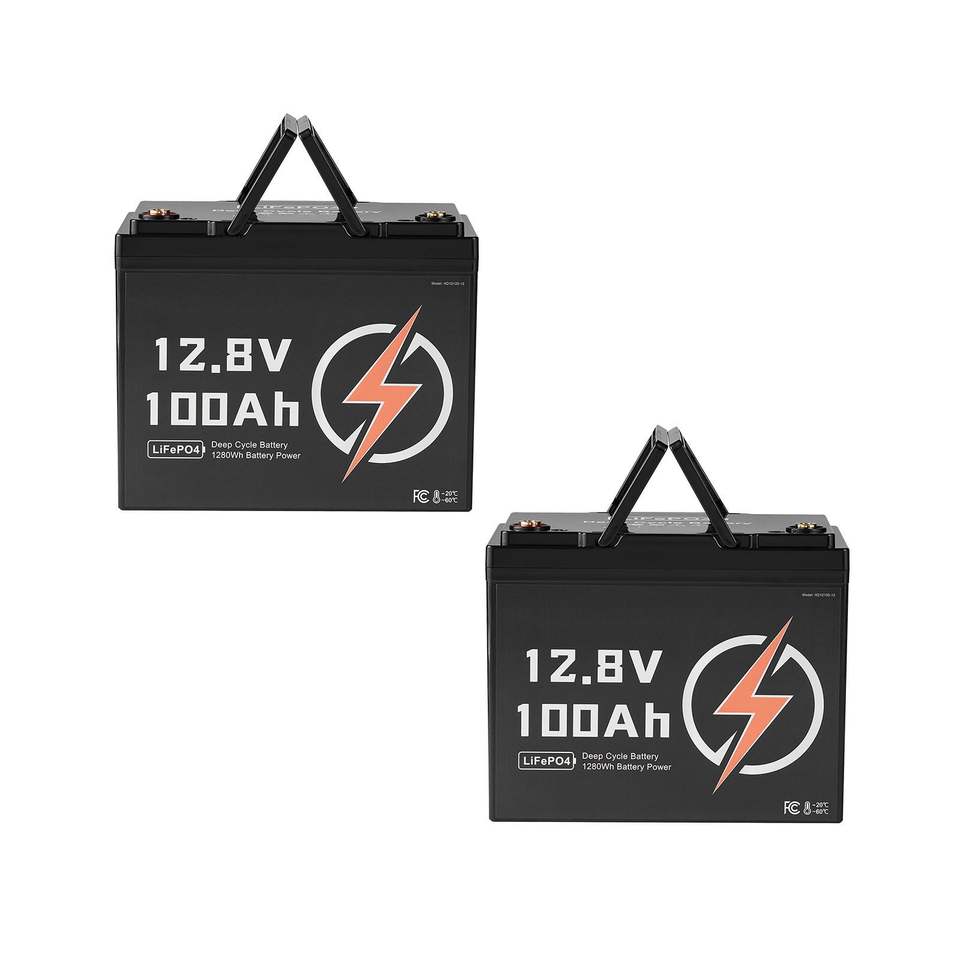 Confezione da 2 Batterie LiFePO4 12V 100Ah, 15000 Cicli, Ciclo Profondo, Litio Ferro Fosfato, BMS Integrato, Low Temp Pro per Energia Domestica