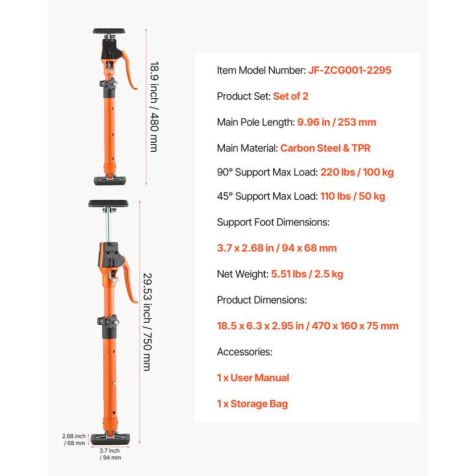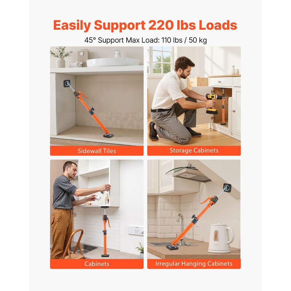 Set da 2 Aste di Supporto Telescopiche in Acciaio da 18,9-29,5 Pollici, Asta di Sostegno Rapido per Armadietti, Capacità di Carico 220 Libbre, Sistema di Supporto Regolabile a Terza Mano