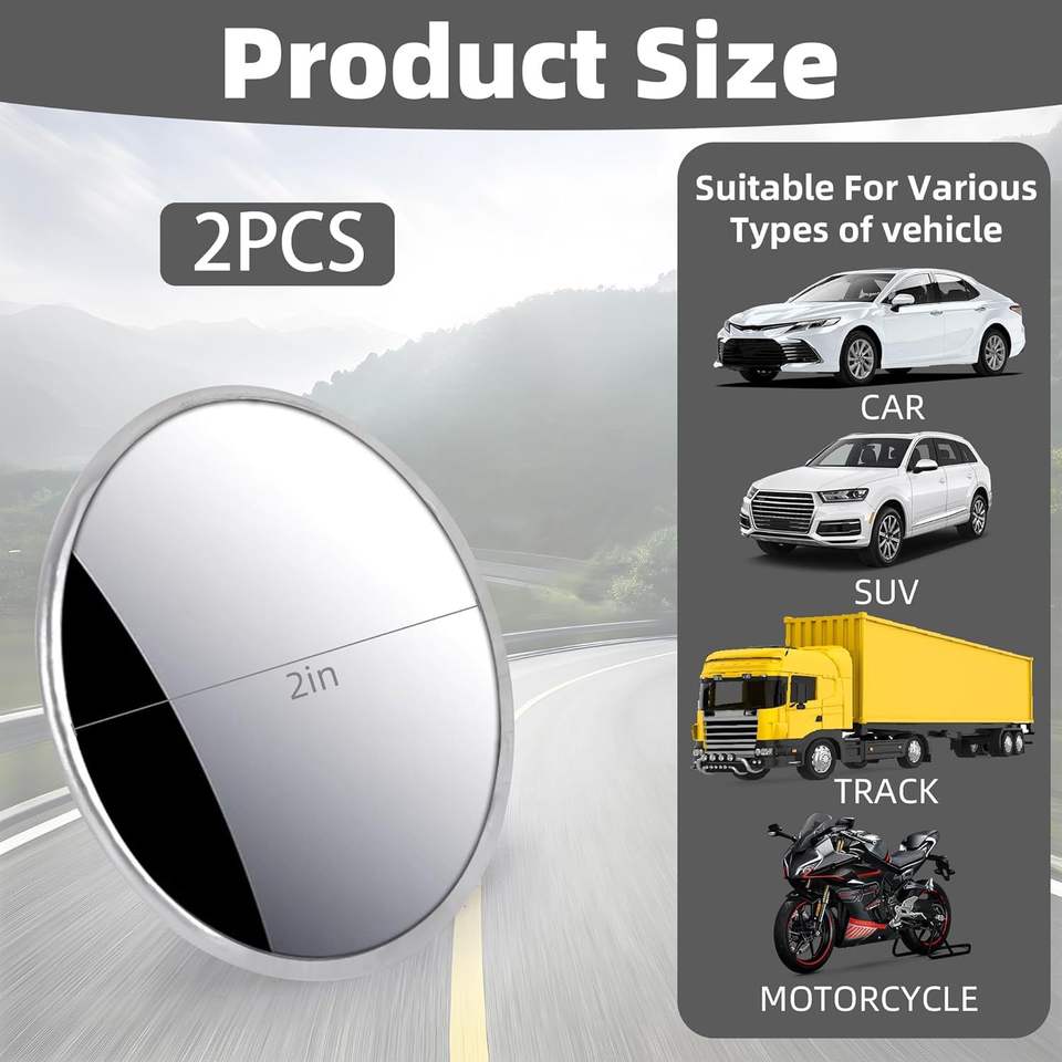 Set di 2 Specchietti Retrovisori Convessi da 2 Pollici per Auto/SUV/Moto/Camion/Rimorchi/Motoslitte/Biciclette