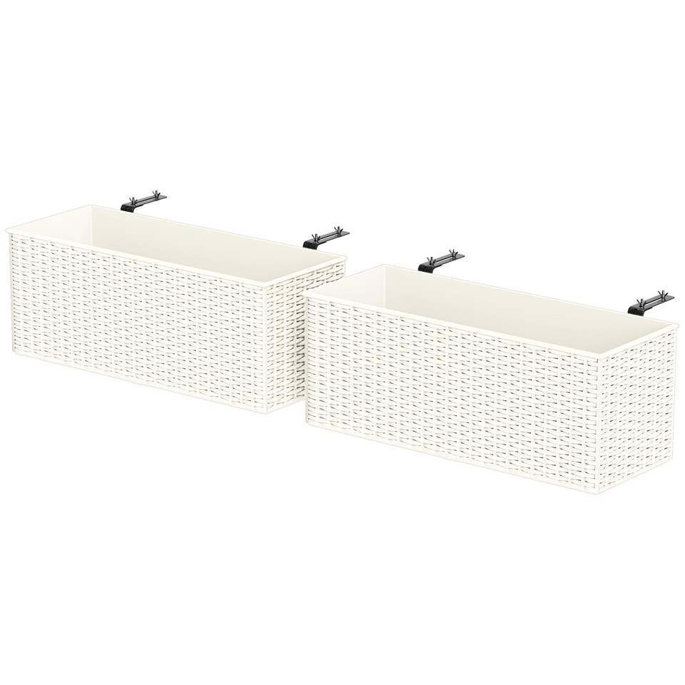 Set di 2 Vasi Sospesi Bianchi Effetto Rattan da 20 Pollici con Ganci e Fori di Drenaggio per Ringhiere e Recinzioni, Accessori Premium per Cesti Sospesi