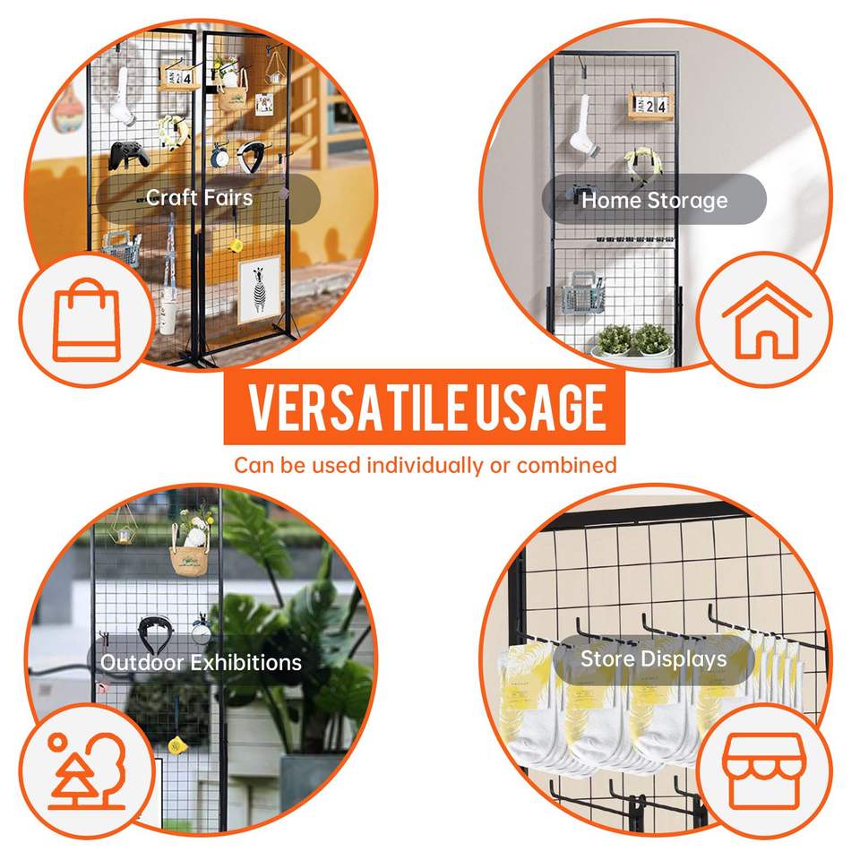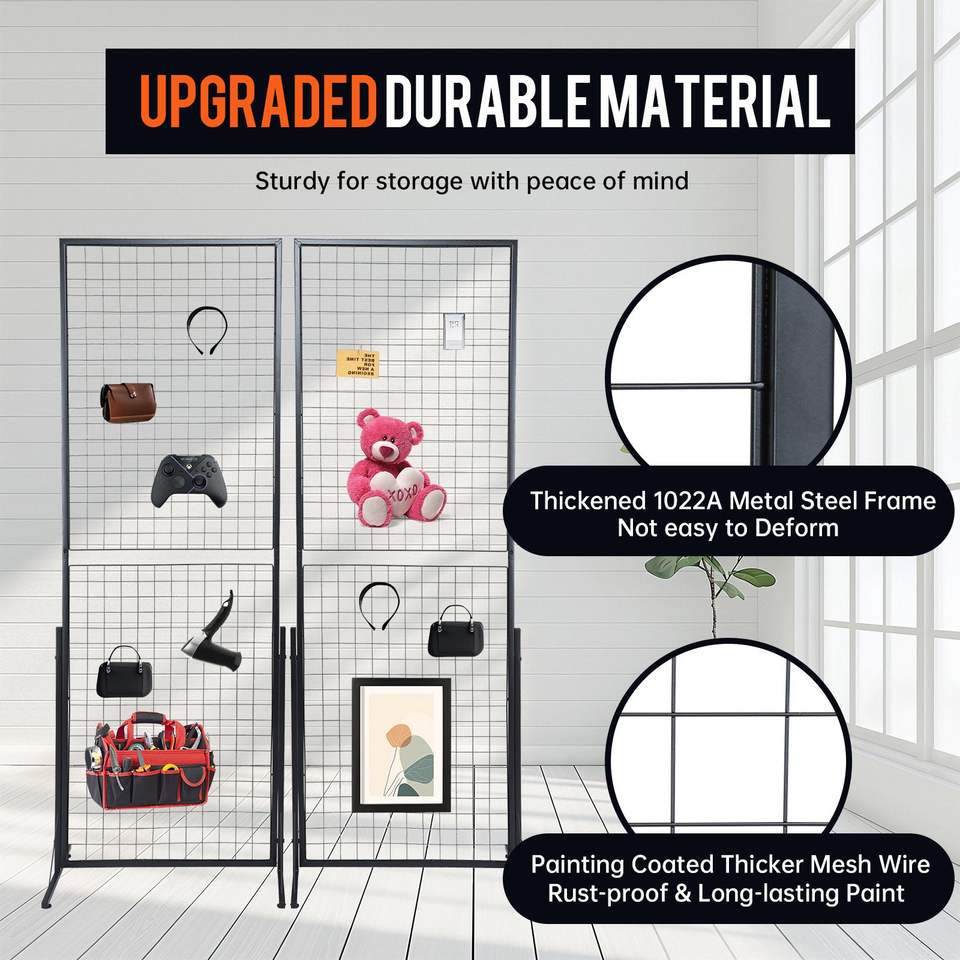 2 Pack 24\"x67\" Dual Sided Wire Panel Display System Commercial Grid Wall T Base Stand for Retail Stores & Craft Fairs