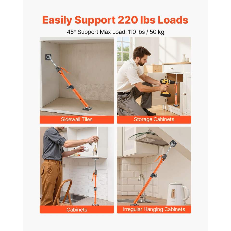 Set di 2 Supporti Telescopici in Acciaio da 25,4-45,3 Pollici, Sistema di Supporto Regolabile a 3° Mano, Capacità 220 Libbre, Asta di Sostegno per Armadi