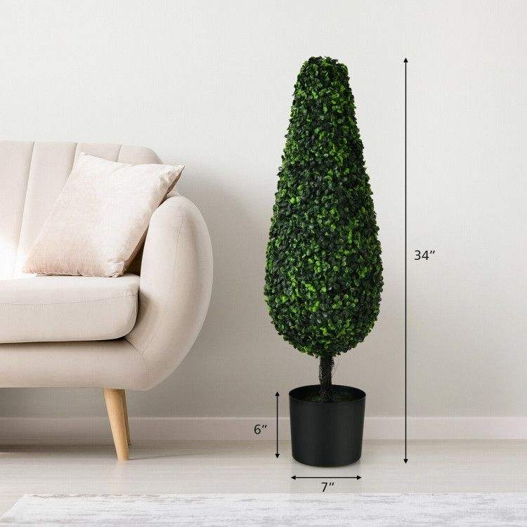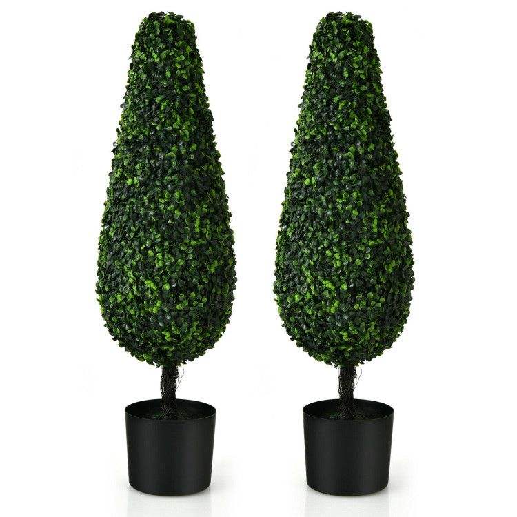 Set di 2 Alberi Topiari Artificiali Eleganti da 90 cm, Resistenti ai Raggi UV, per Interni ed Esterni, Design a Torre per Decorazione Casa
