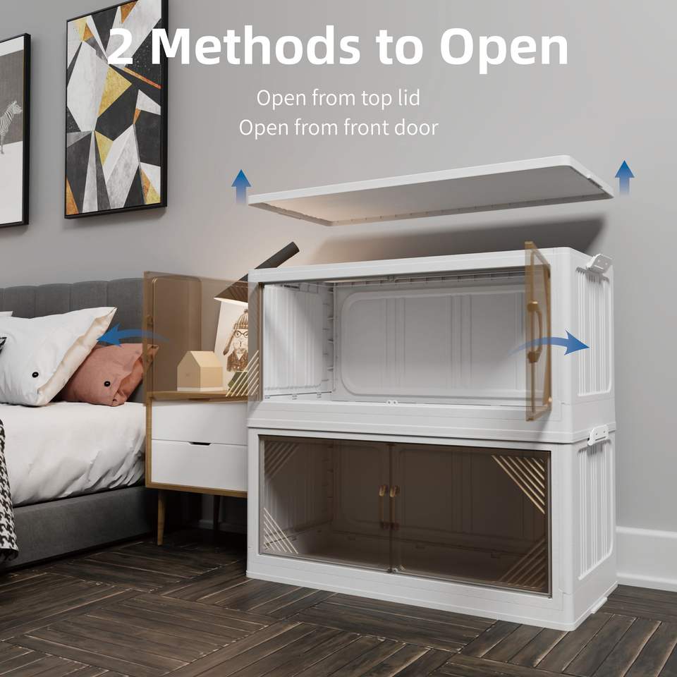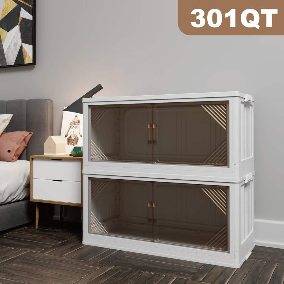 Set di 2 Contenitori di Stoccaggio in Plastica Trasparente 301QT, Larghezza 35.4, Scatole Pieghevoli per Organizzazione Armadio