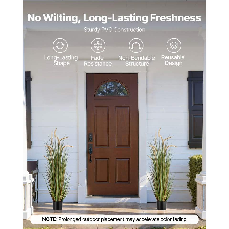 Set di 2 Piante Artificiali di Erba di Cavallo in PVC Premium da 47 Pollici, per Interni/Esterni, con Vaso Incluso