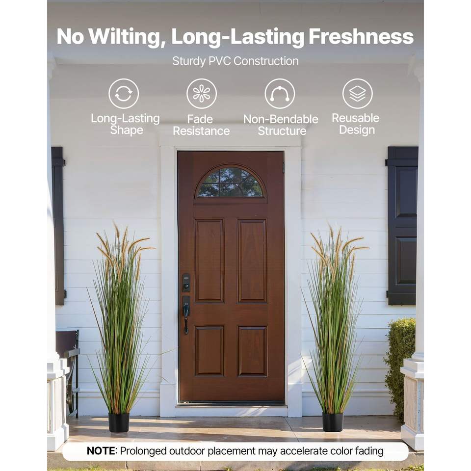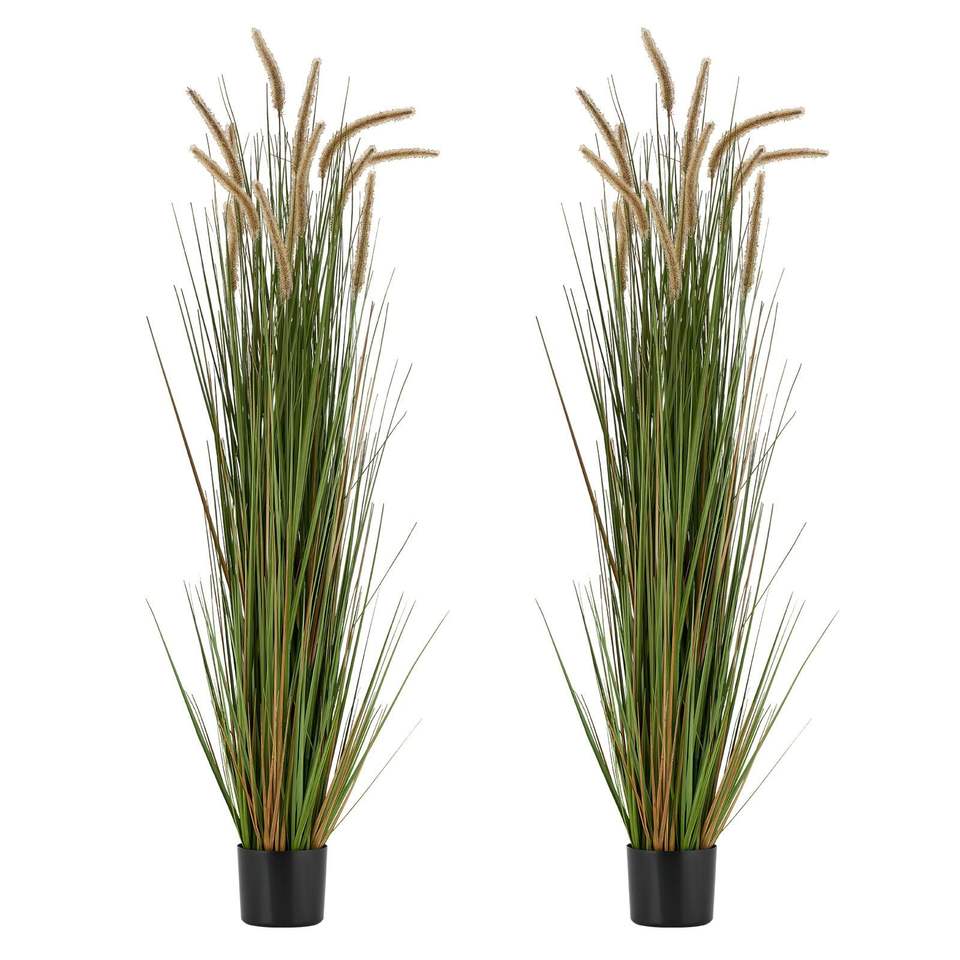 Confezione da 2 Piante Artificiali in PVC Premium da 150 cm, Erba di Cavallo in Vaso per Interni ed Esterni, Finto Arbusto Verde