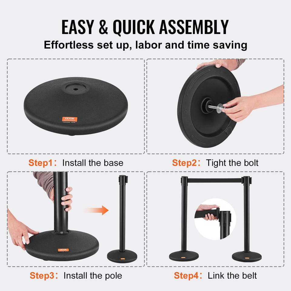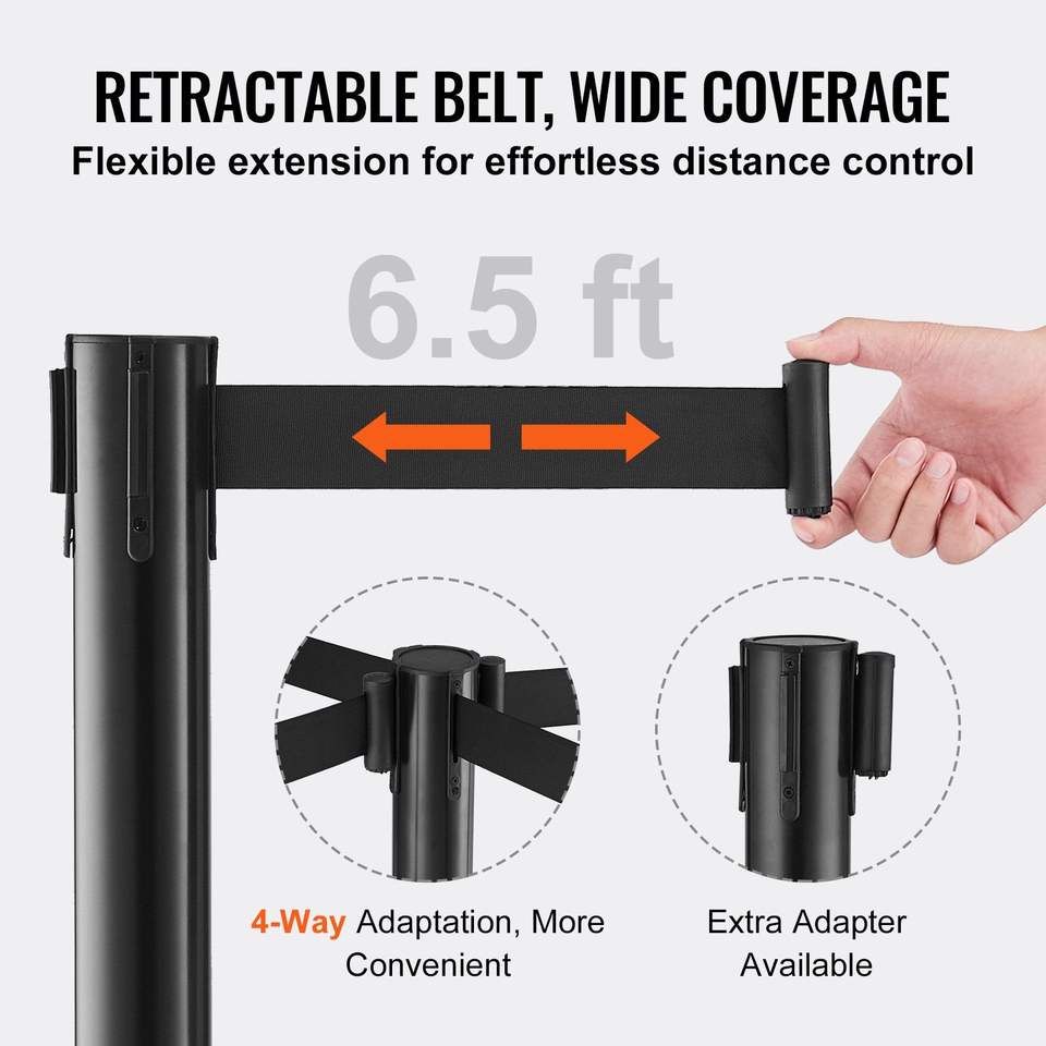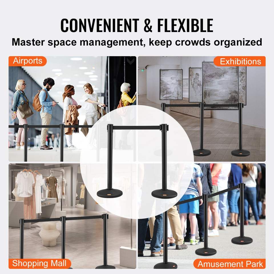 Confezione da 2 Pali Divisori Neri Retrattili da 2 Metri con Cinghia in Plastica per Controllo Folla, Prodotti per il Controllo Accessi, Barriera per Code