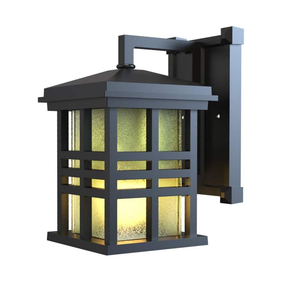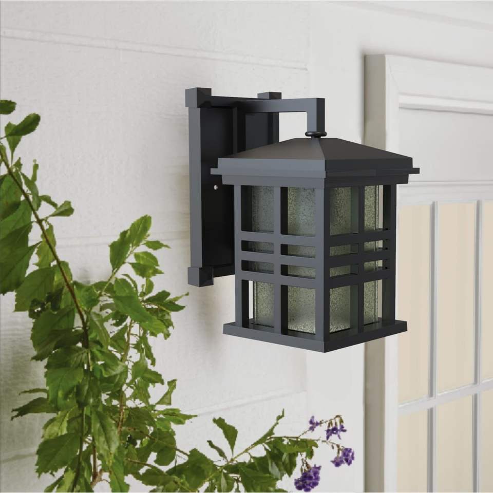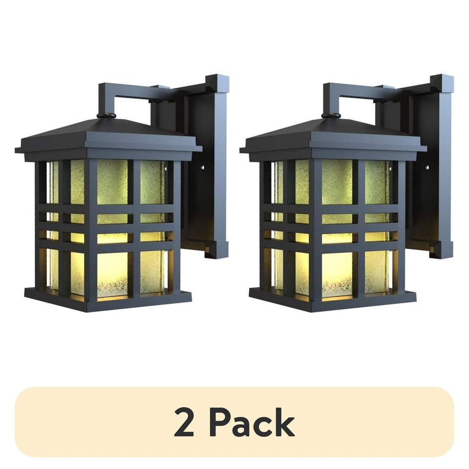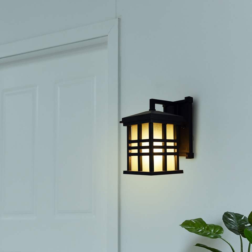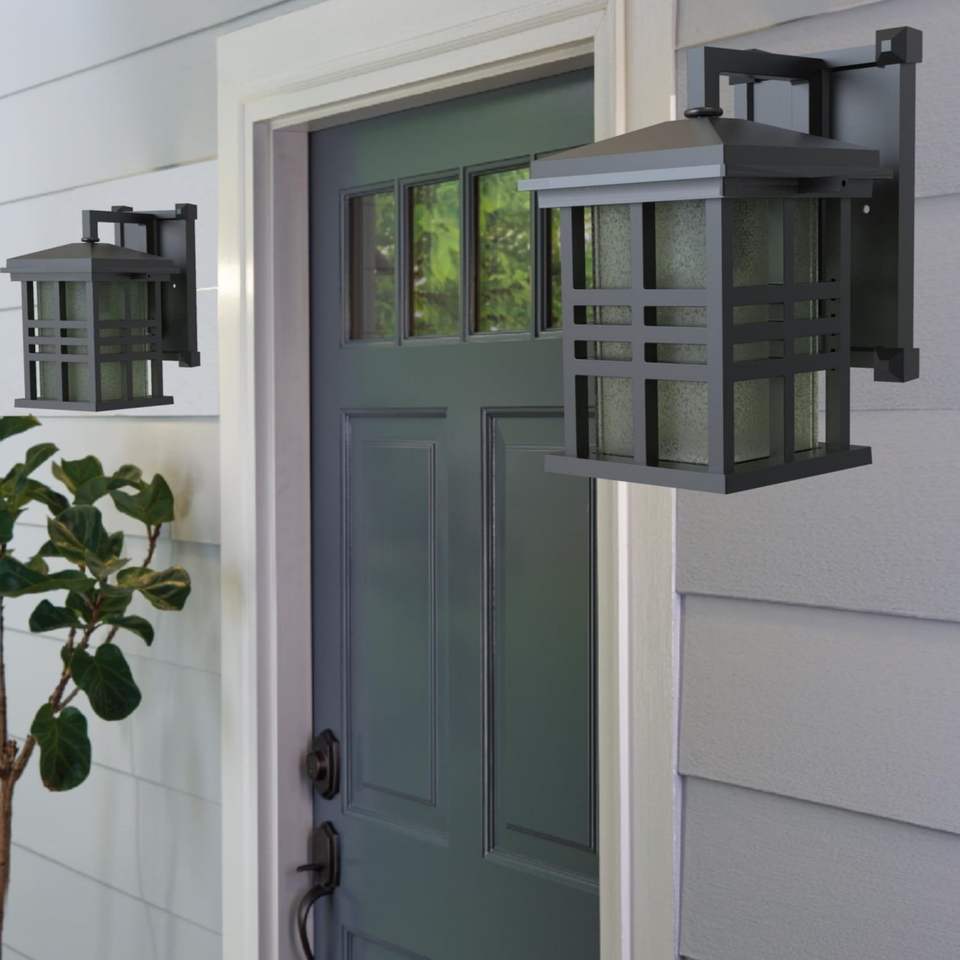 2 Pack 9.8\" Farmhouse Bronze Outdoor Wall Light with Metal Fixture and Stained Glass Shade Outdoor Wall Lamps
