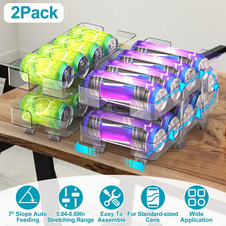 Confezione da 2 Organizzatori Regolabili a 2 Livelli per Lattine di Bevande, Supporti per Lattine con Inclinazione di 7 Gradi, Dispenser per Bevande per Frigorifero e Dispensa