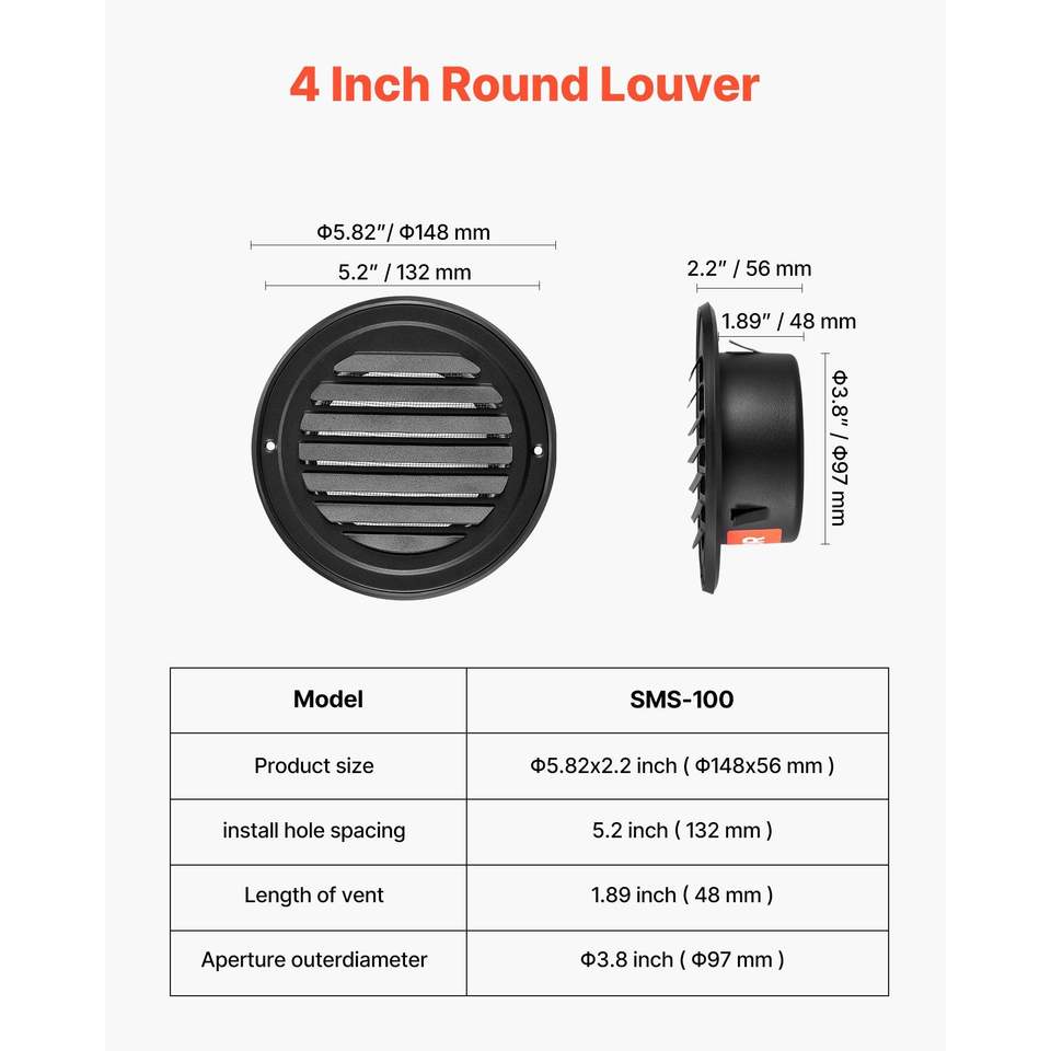 2 Pack Black 4 Inch Round Wall Vent Cover Stainless Steel AC Ventilation Fans