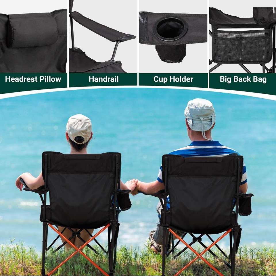 2 Pack Black 600D Oxford Fabric Camping Chairs Portable Outdoor Folding Chairs Steel Frame Removable Footrest Support 120KG for