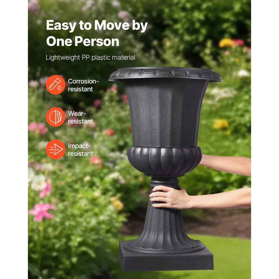 Set di 2 Vasi in Plastica Nera Classici 15,8 X 26,4 Pollici, Versatili per Interni ed Esterni, per Matrimoni e Esposizioni Floreali sul Portico