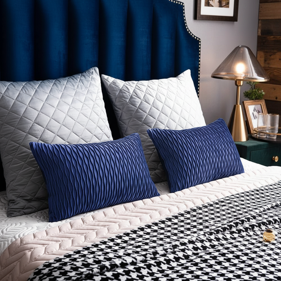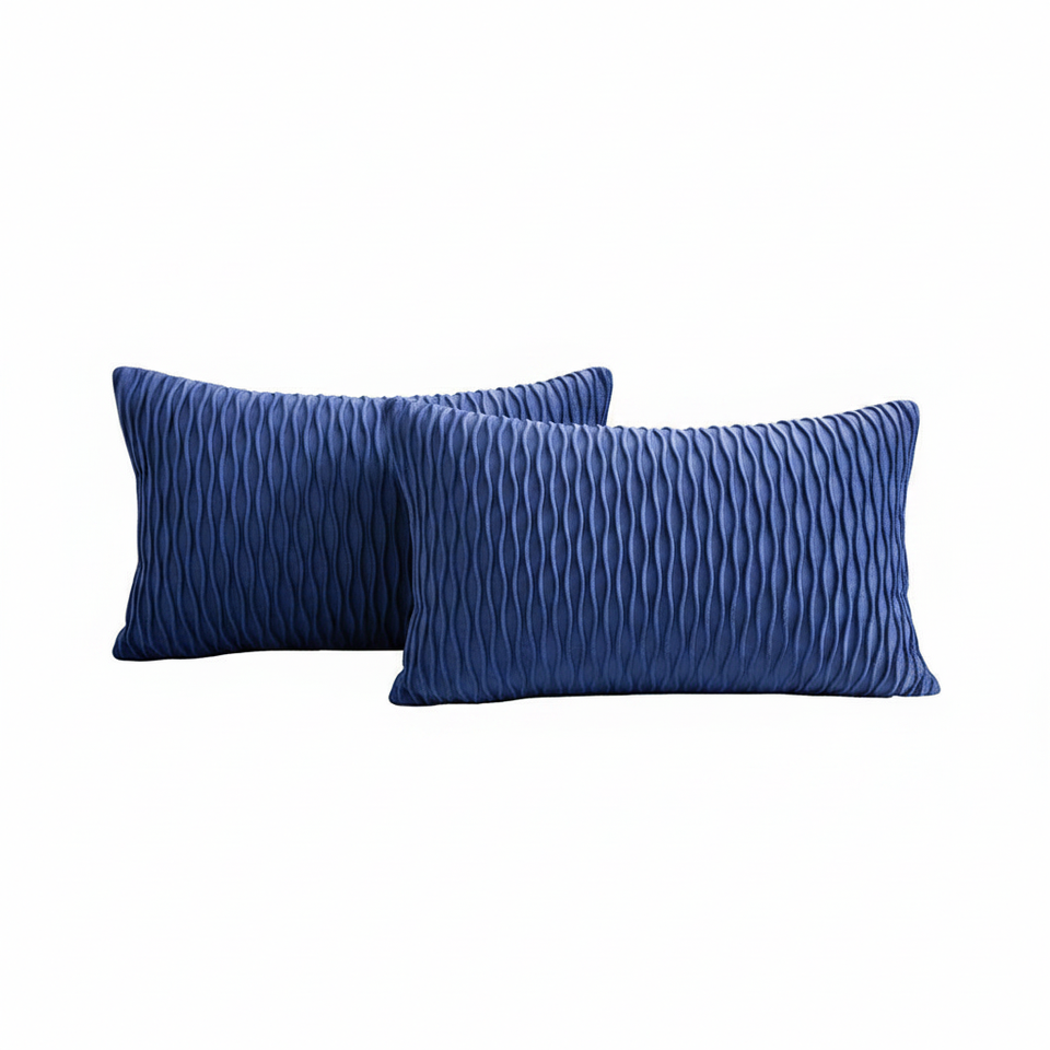 Set di 2 Copricuscini Decorativi Rettangolari 12x20 in Velluto a Righe Blu, Stile Rustico Originale per Divano e Arredamento