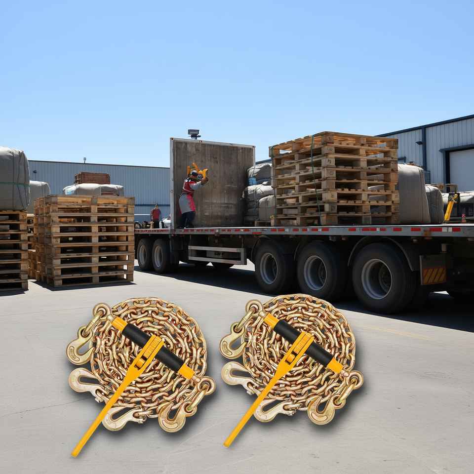 Kit Catena e Cinghia di Fissaggio 3/8 Pollici x 10 Piedi in Acciaio con Gancio a J per Trasporto Sicuro del Carico