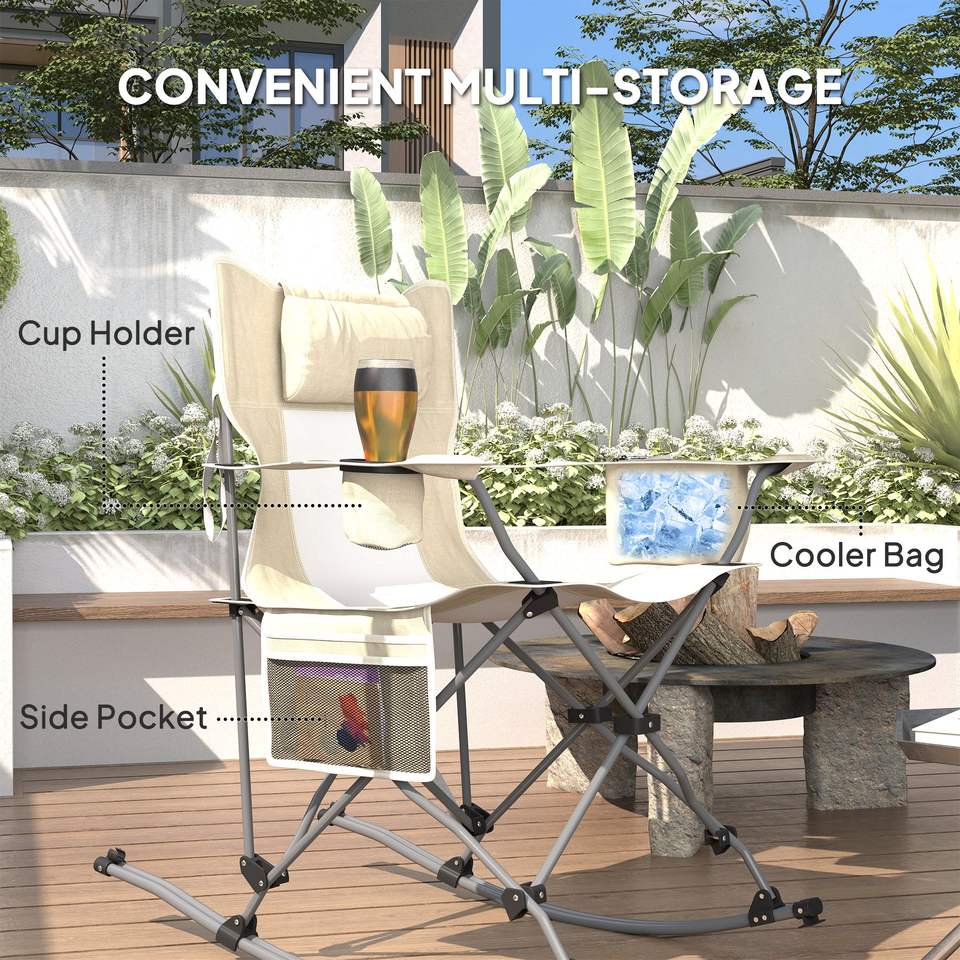 Set di 2 Sedie da Campeggio Pieghevoli Color Crema, Portatili con Poggiatesta Comfort, Borsa Termica, Portabicchieri e Borsa per il Trasporto