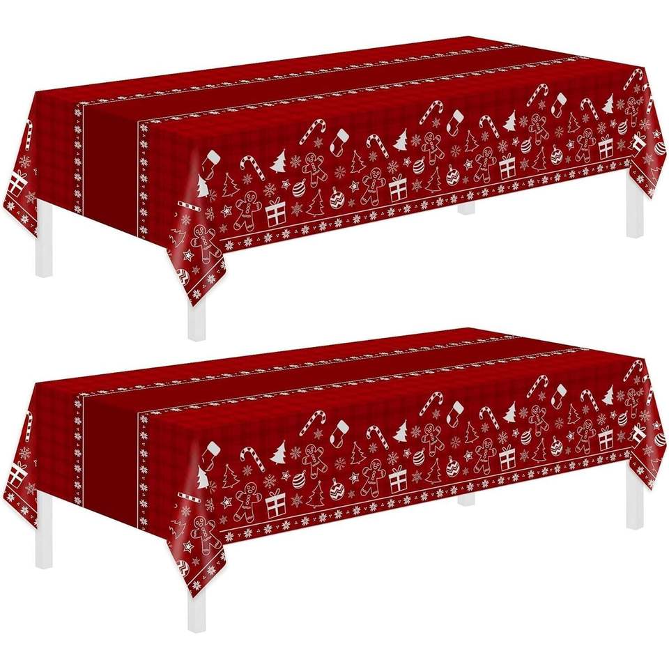 Set di 2 Tovaglie Natalizie Usa e Getta 54 X 108 Pollici, Coperture Rettangolari in Plastica, Tema Rosso, Decorazioni Natalizie