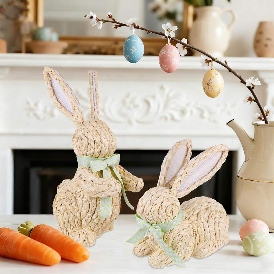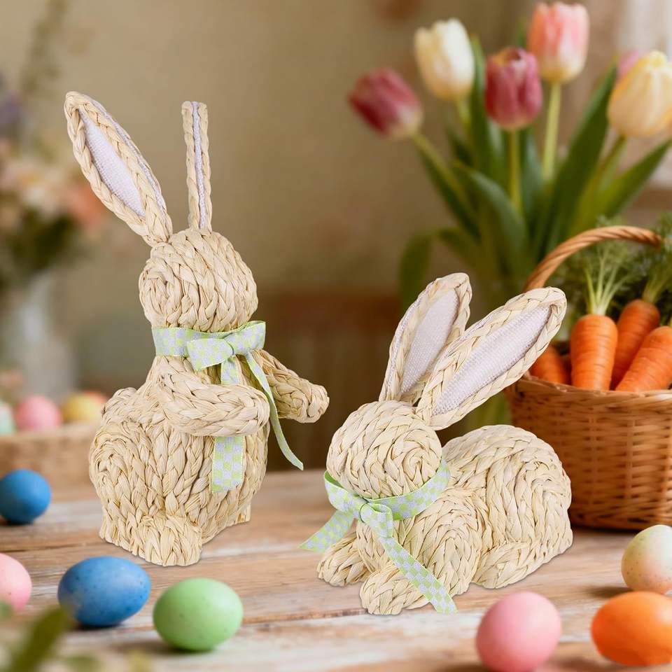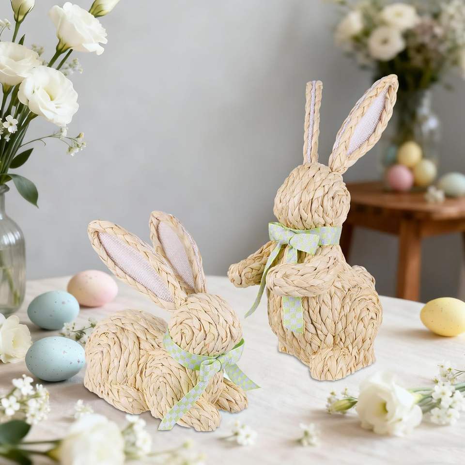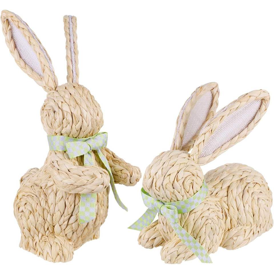 Set di 2 Coniglietti Pasquali in Vimini, Decorazioni per Centrotavola, Arredamento Primaverile Rustico per Interni, Coniglietti Pasquali 2022