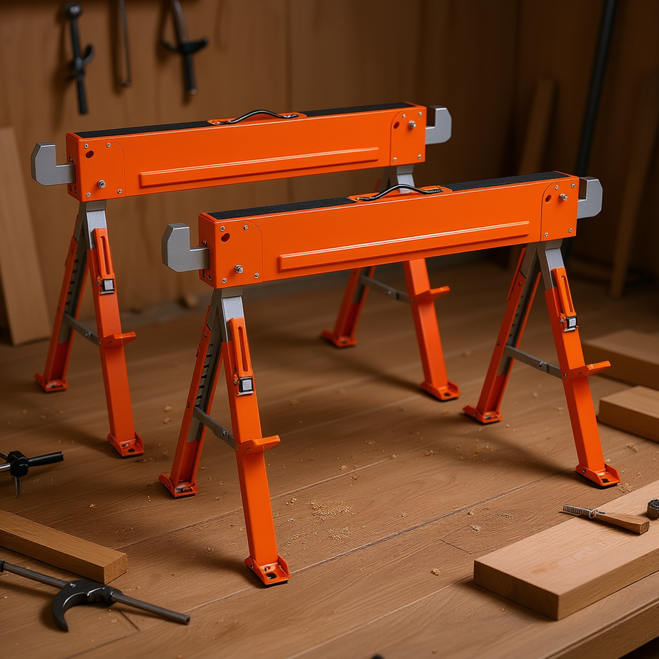 Set di 2 Cavalletti da Lavoro Regolabili in Altezza, Capacità 1800 Libbre, per Falegnameria e Studi Attivi