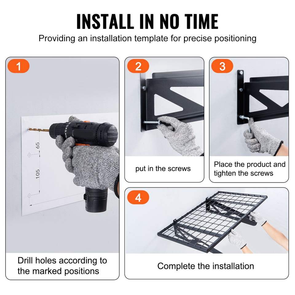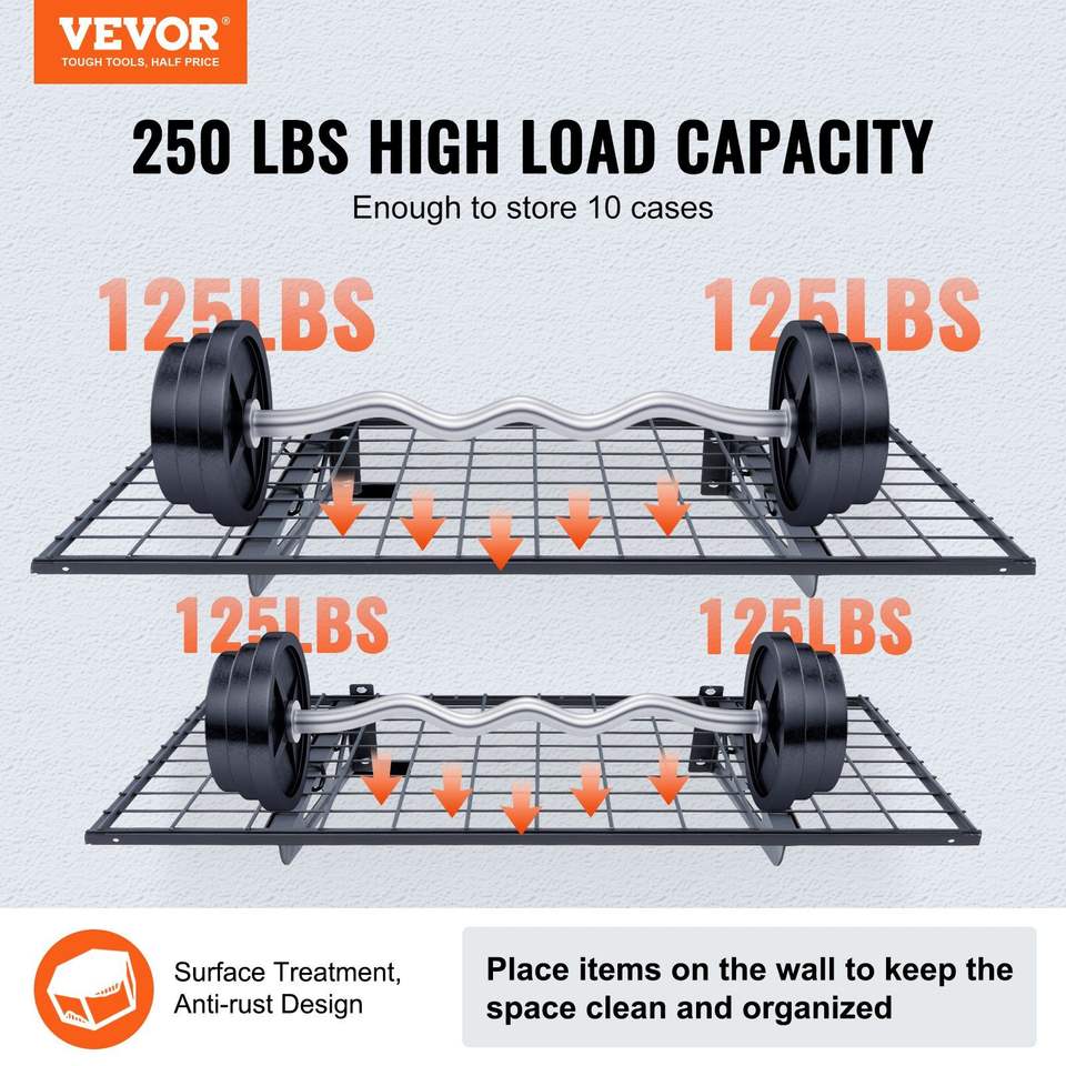 Set di 2 Scaffali da Garage Resistenti 3 x 2 Piedi, Montaggio a Parete, Capacità di Carico 500 Libbre, Scaffalature per Garage 3 x 2 Piedi
