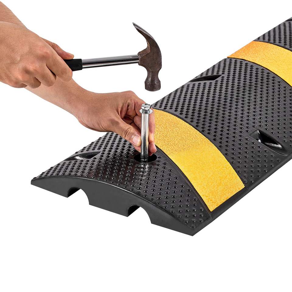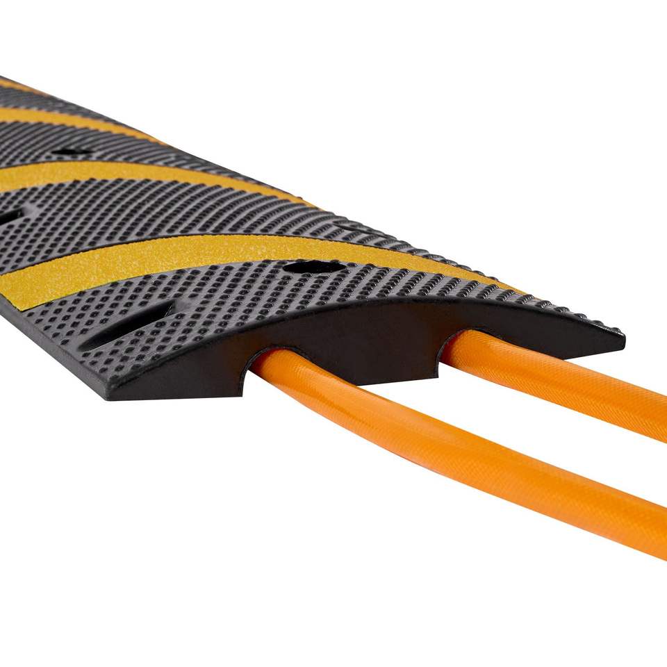 Confezione da 2 Dosso Rallentatore in Gomma Resistente da 1,8 m, Capacità di Carico 22.000 libbre/asse, Protezione Cavi a 2 Canali, Dosso Rallentatore per Traffico