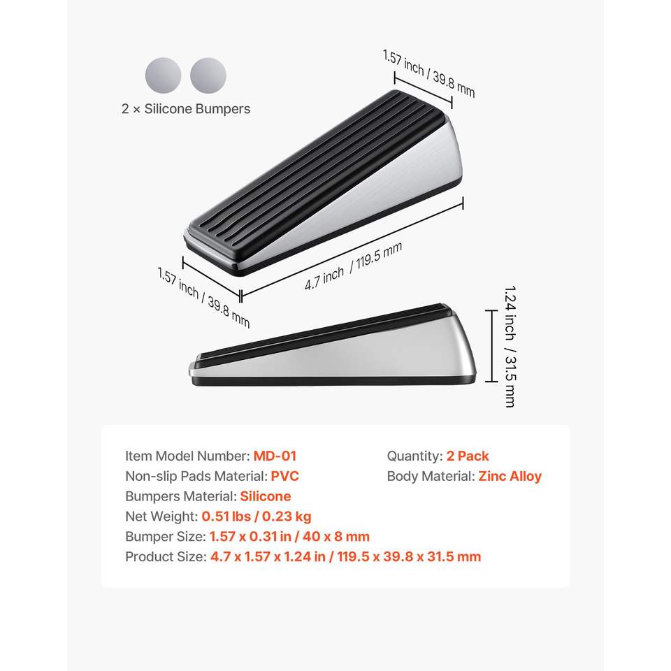 Set di 2 Fermaporta Robusti in Lega di Zinco Premium con Cuscinetti Antiscivolo in PVC su Entrambi i Lati, Cuneo di Fermo Inferiore Autoportante per Porte