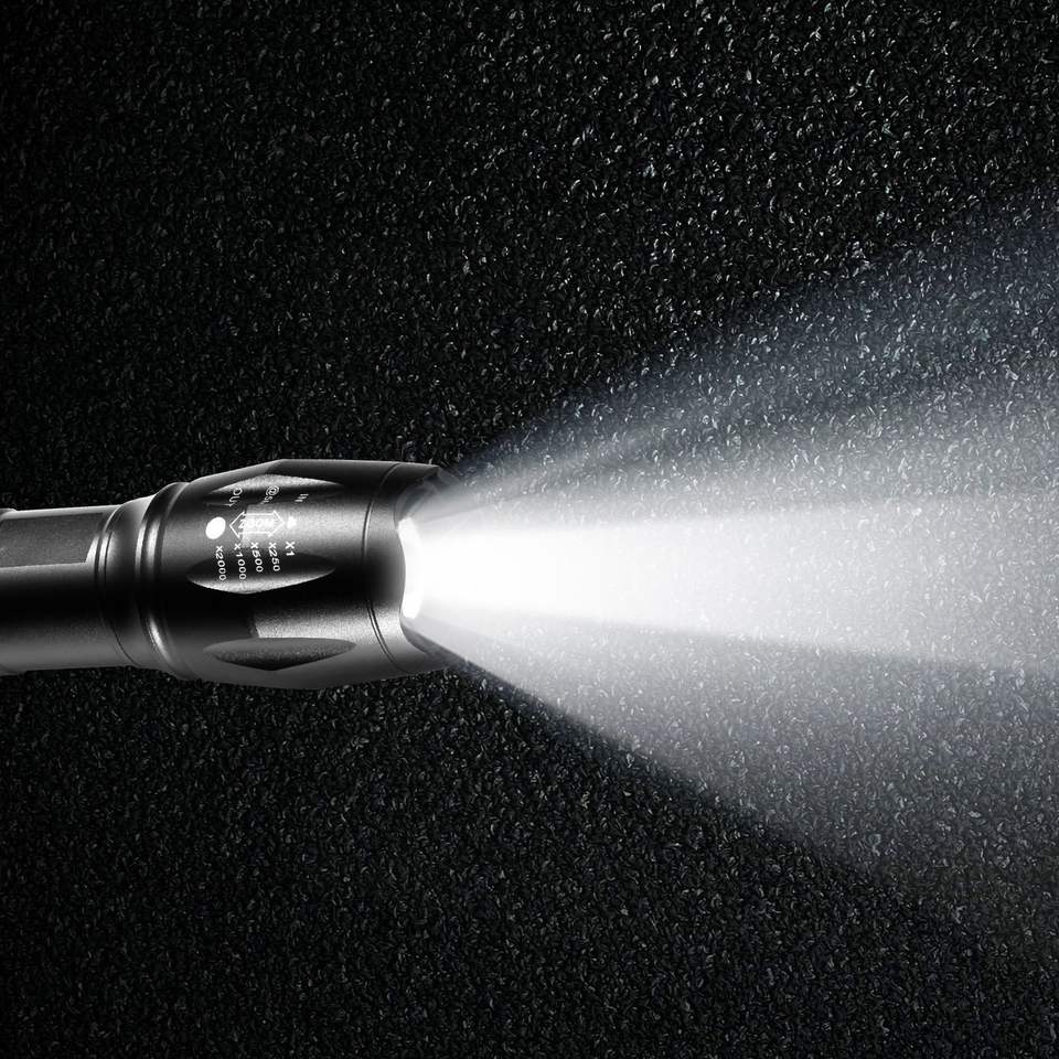 Set di 2 Torce LED Impermeabili IP44, 2000 Lumen, 5 Modalità Regolabili, Focale Regolabile, Torcia Portatile