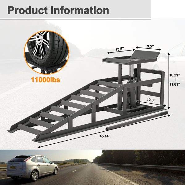 2 Pack Low Profile Hydraulic Car Ramps 5T 11000lbs Garage Vehicle Lift Service for Truck and Trailer Gray Color