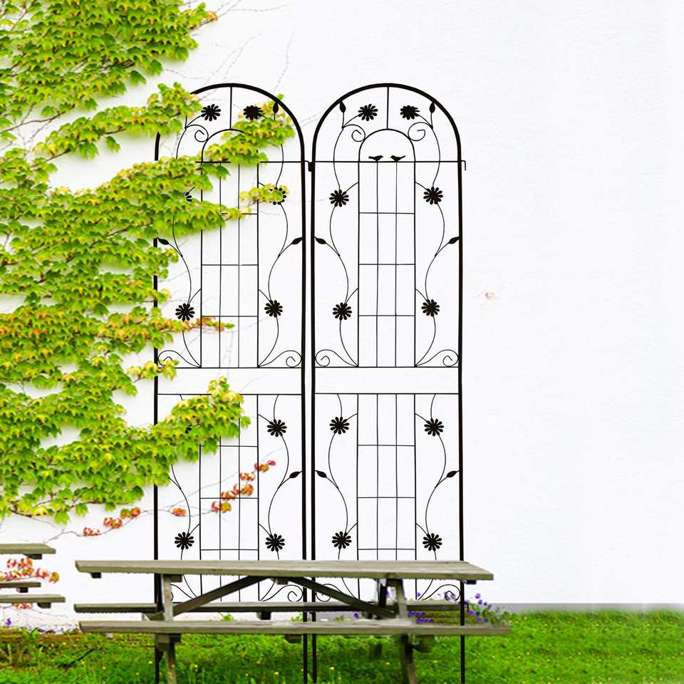 Set di 2 tralicci da giardino in metallo 220x50 cm, antiruggine, per piante rampicanti, recinzioni e cancelli