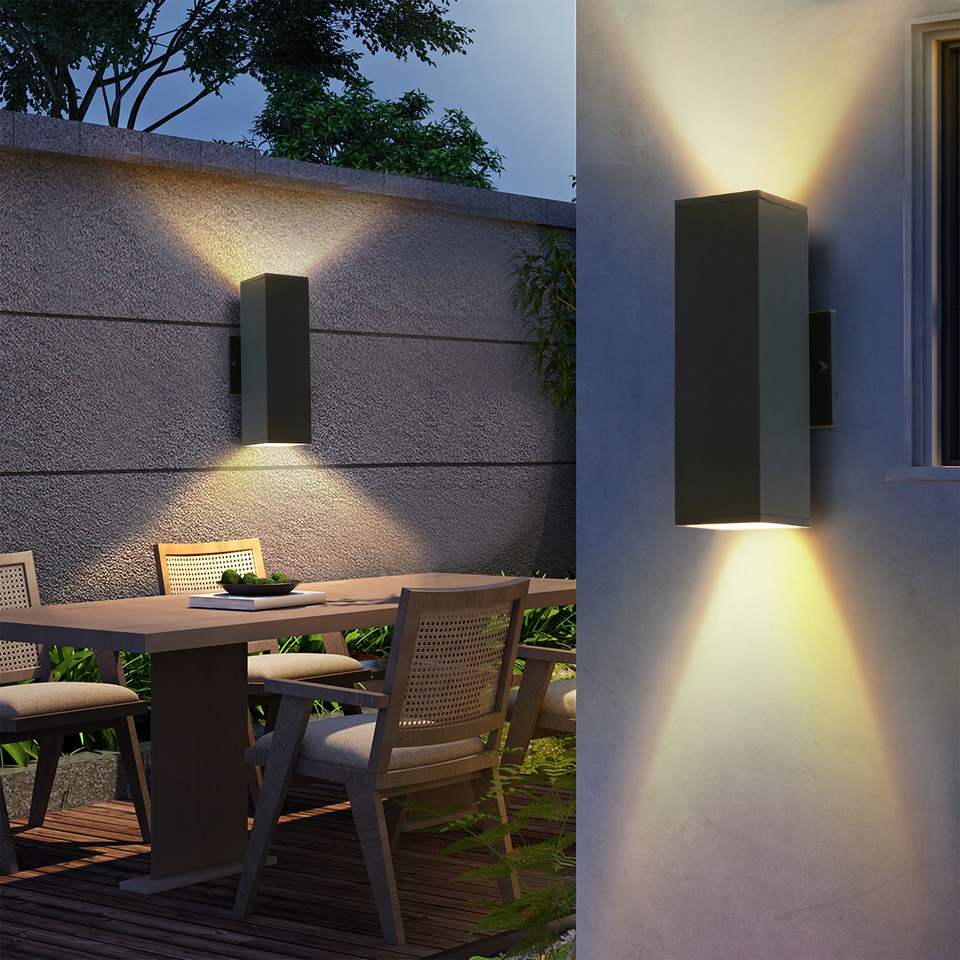 Set di 2 Applique da Esterno Moderne, Impermeabili, in Alluminio Nero, per Montaggio a Parete Esterna