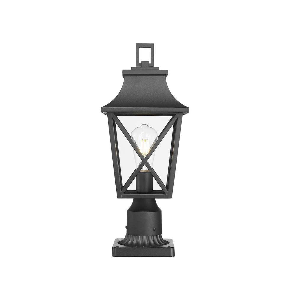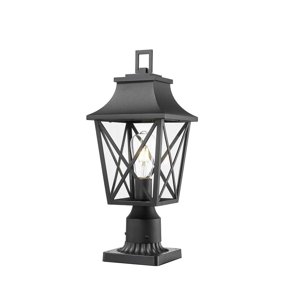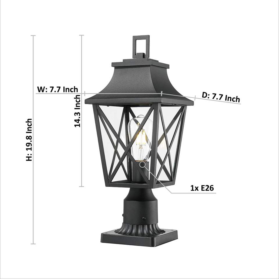 2-Pack Outdoor Post Column Lantern Lighting Fixture Black Pole Pier Mount Base Hard Wired Glass Yard Patio Path Lamp Post Lights