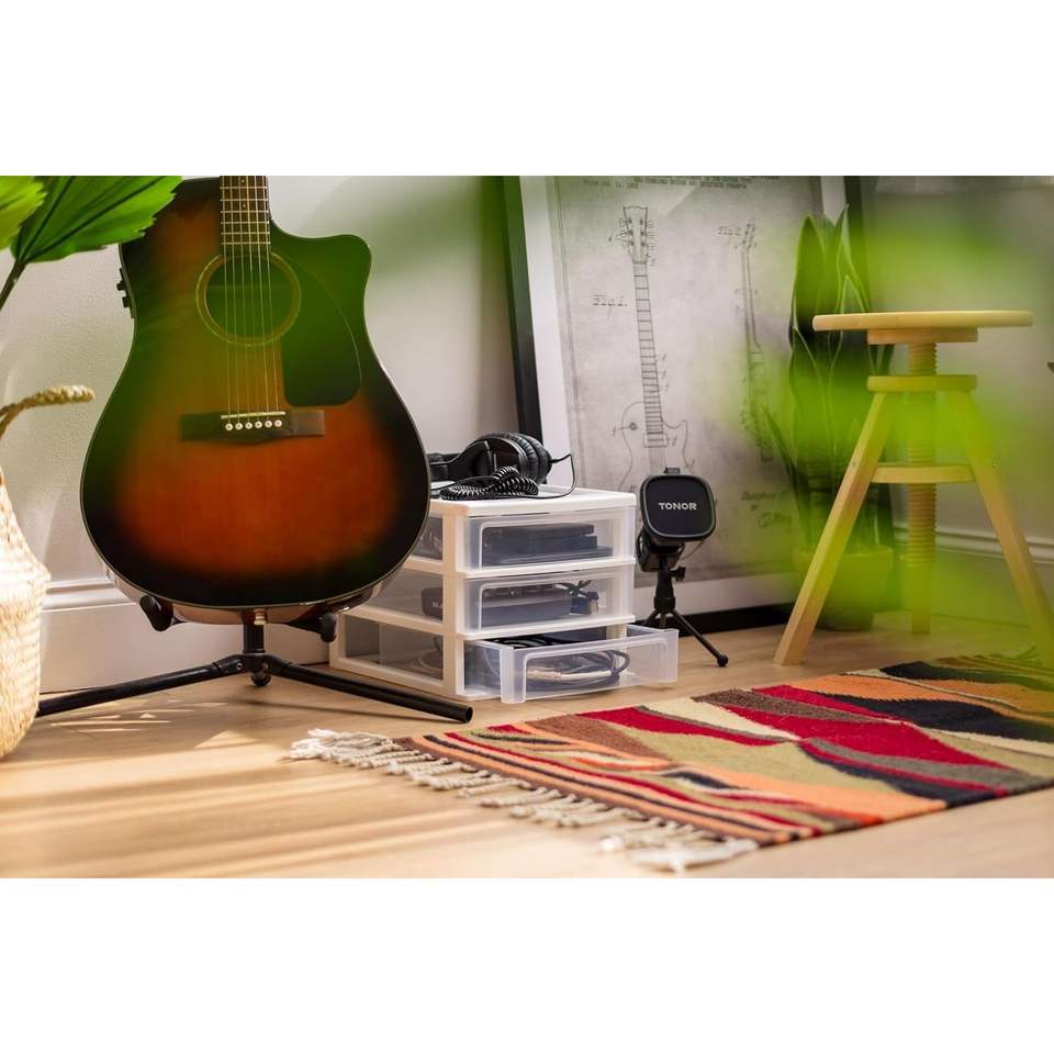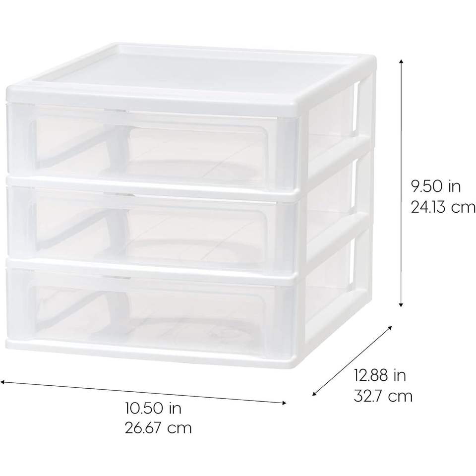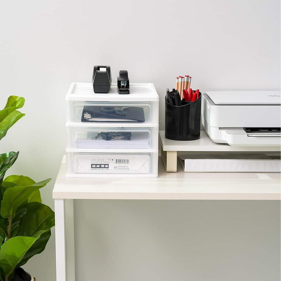 Set di 2 Organizzatori da Scrivania in Plastica con 3 Cassetti e Funzione Impilabile