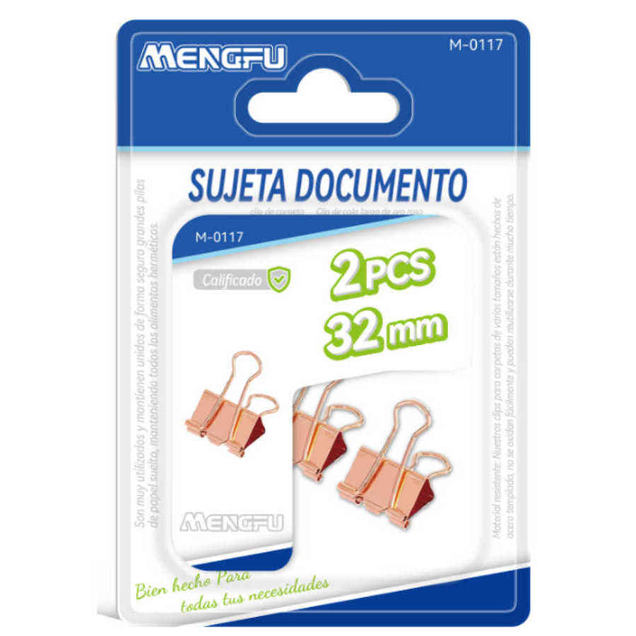 Mengfu M-0117 2-Pack Rose Gold 32mm Magnet Binder Clips Steel Plastic Office/School Stationery Made with High Quality Materials