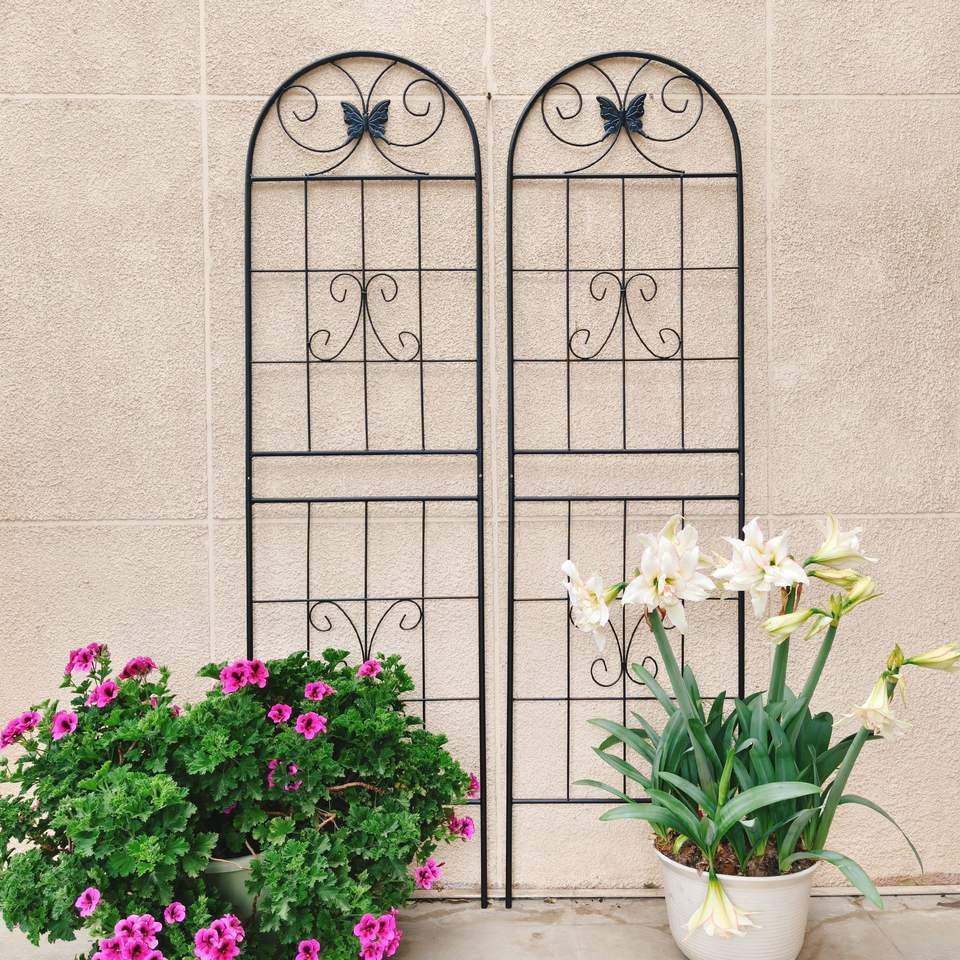 Set di 2 tralicci da giardino in metallo neri antiruggine da 180 cm x 50 cm per piante rampicanti, supporto per fiori da esterno