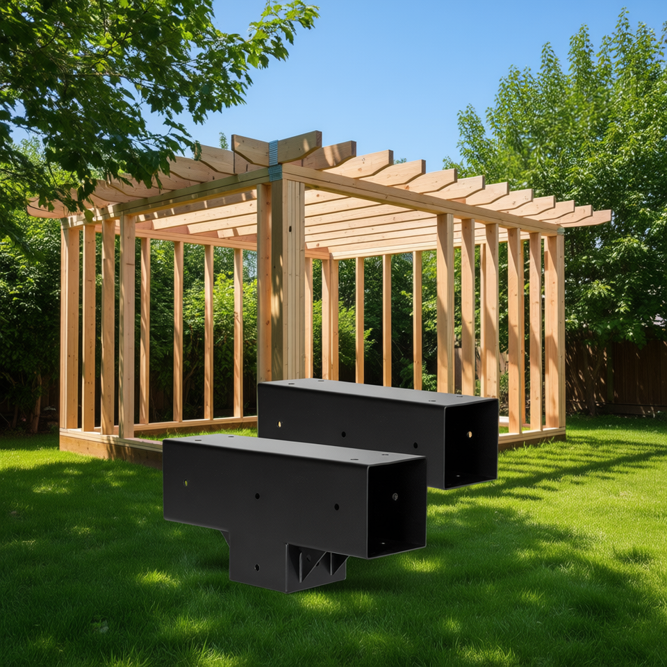 Staffa a T per Pergola 4x4, per Trave in Legno 3.5x3.5 Pollici, Kit Fai-da-te da Esterno, Confezione da 2