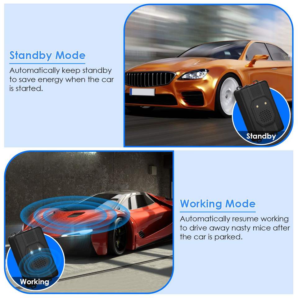 Confezione da 2 Repellenti Ultrasonici per Roditori da Sottocofano con Luce Stroboscopica per Interni, Strumento per il Controllo dei Roditori e la Pulizia dell'Auto con 3 Potenze