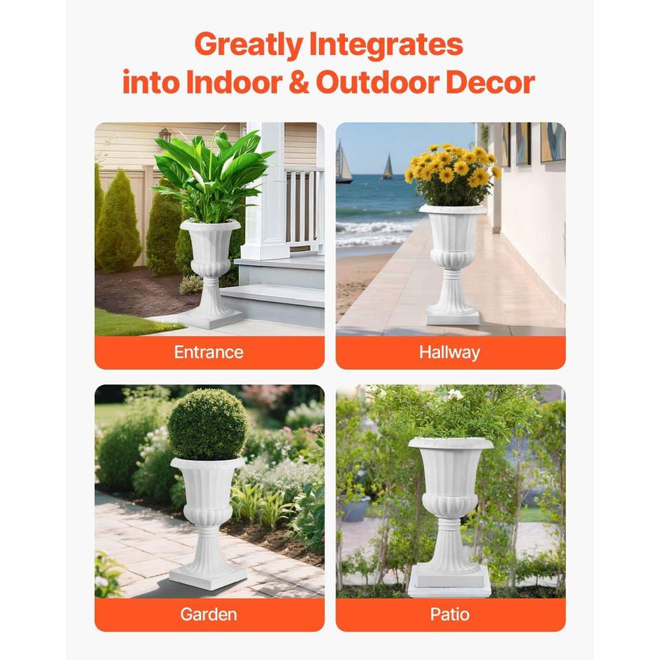 Set di 2 Vasi in Plastica Bianchi Classici 15,8 X 26,4 Pollici, Versatili per Interni ed Esterni, Ideali per Matrimoni e Fioriere