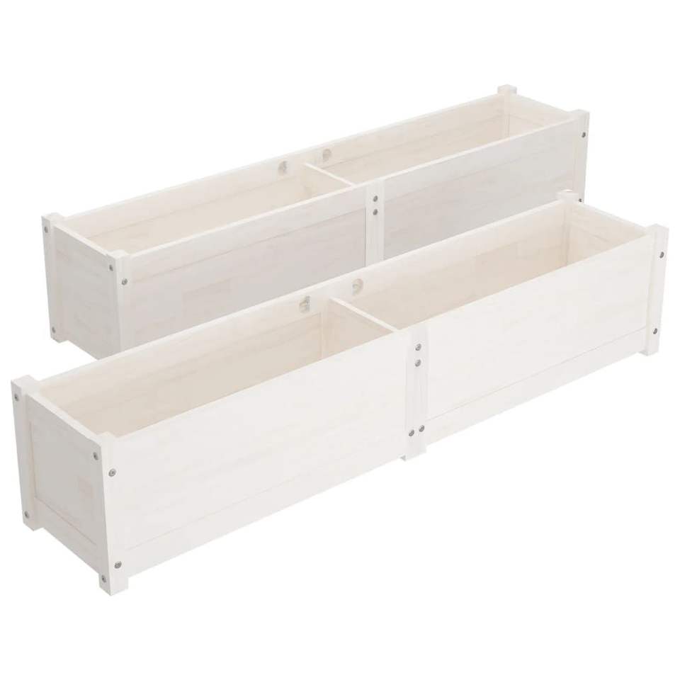Set di 2 Fioriere e Vasi Rialzati in Legno di Pino Bianco Massiccio