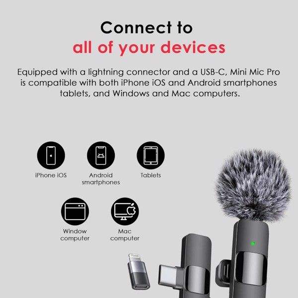 Microfono Lavalier Wireless (2 Pezzi) per iPhone, iPad, Android - Registrazione Cristallina per Video (per Utenti iPhone)