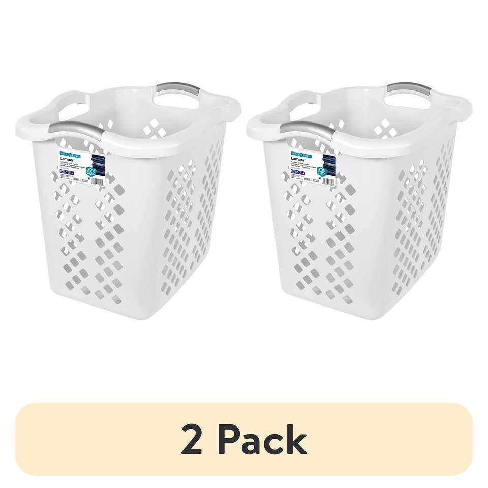 1 Pack 2 Bushel Adult Laundry Baskets with Silver Handles White Color