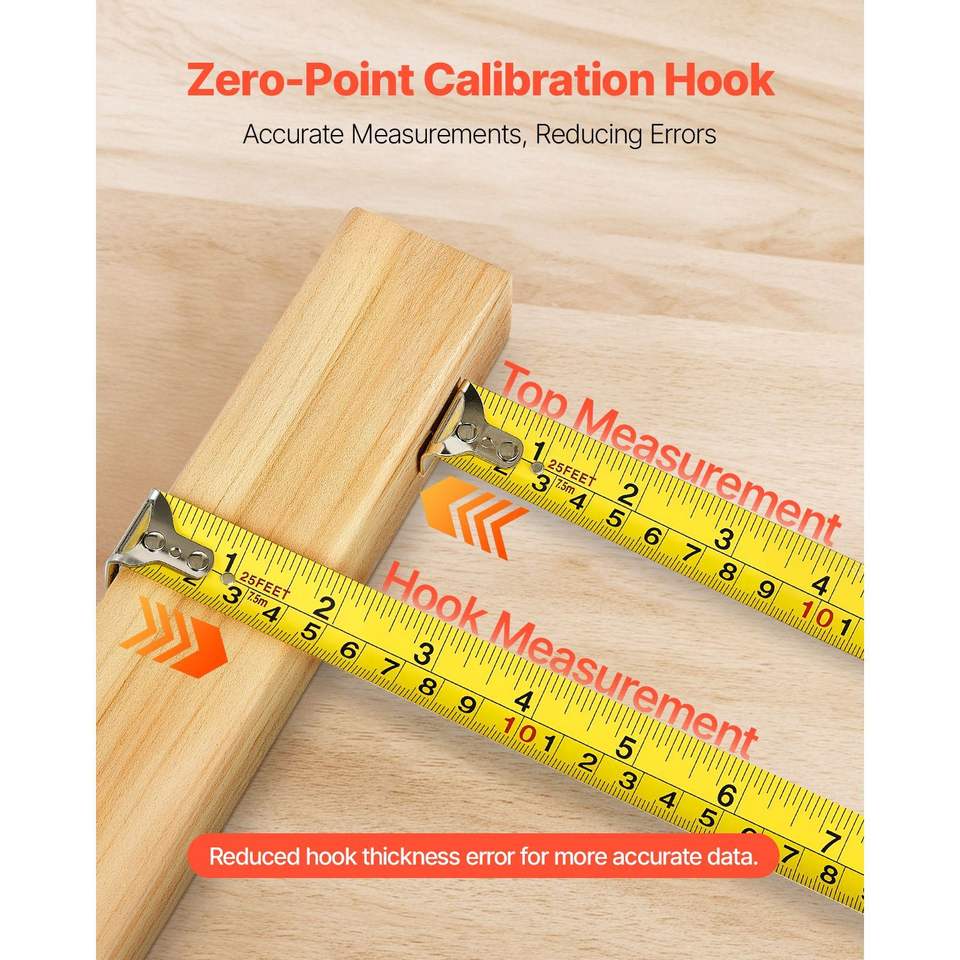 Confezione da 2 misuratori a nastro da 7,6 m (25 ft) con doppia scala, custodia in ABS, metrico e imperiale, con rullo retrattile Easy R per misurazioni