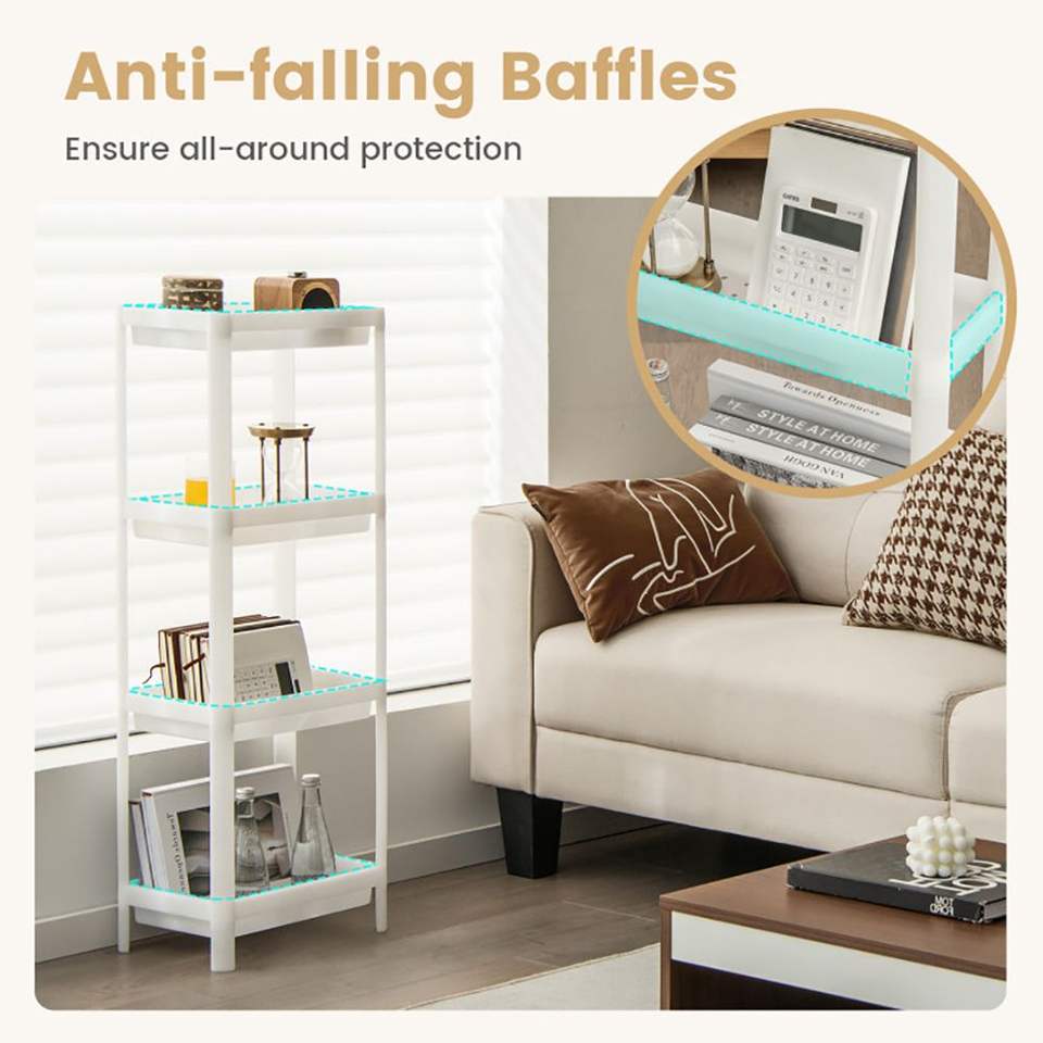 Set di 2 Carrelli Portaoggetti Sottili a 4 Ripiani con Fori di Drenaggio Rimovibili per Cucina e Soggiorno in Spazi Ristretti