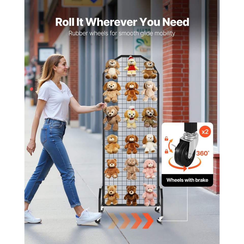 2 Pacchi di Pannelli a Griglia in Filo Metallico Nero 1,9 x 5,4 ft, Espositore Mobile per Arte con 20 Ganci e Ruote per Scaffali