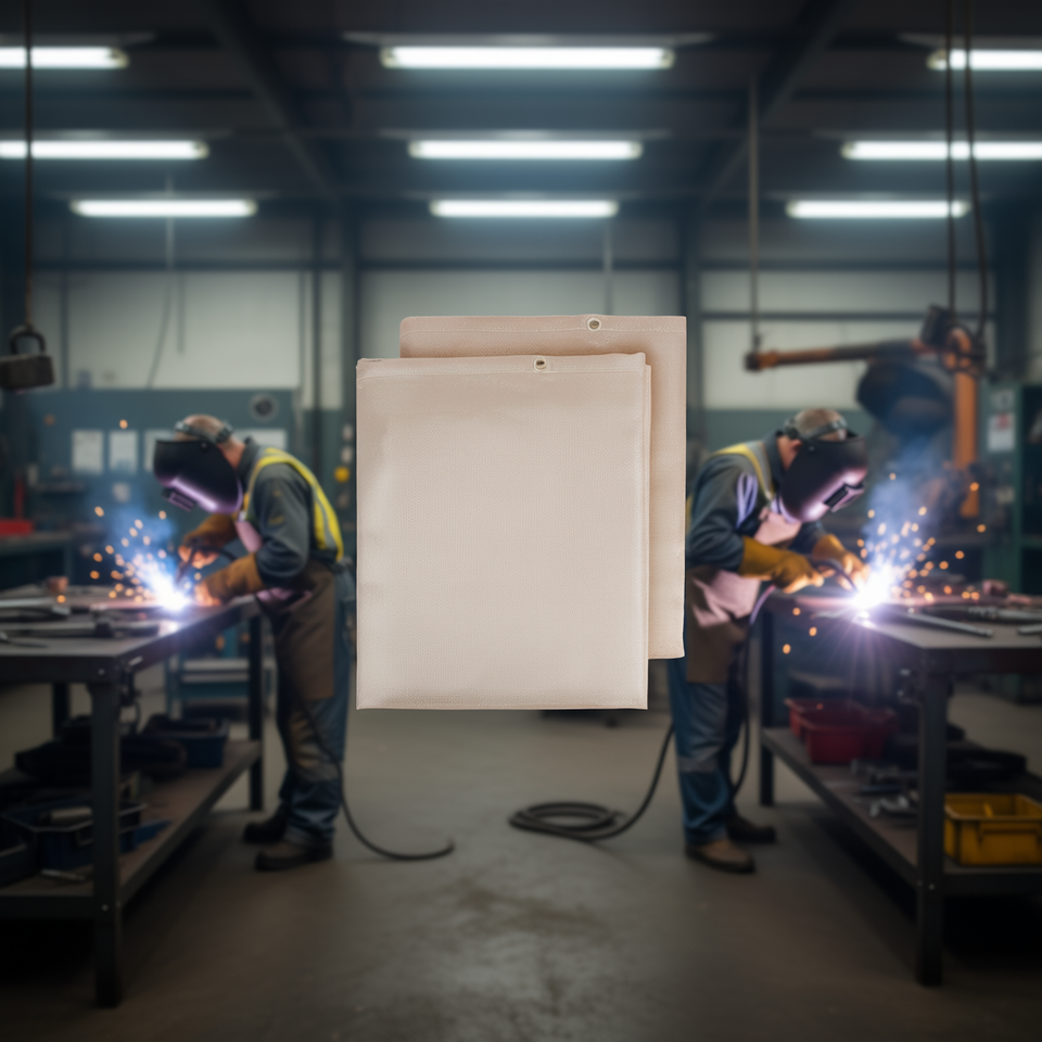 Fiberglass Cloth 4FT X 6FT Heat Treated Flame Retardant With Metal Grommets For Welding Protection