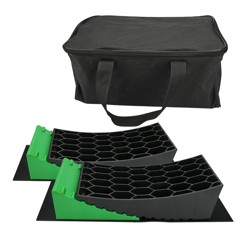 Kit di 2 Blocchi di Livellamento per Camper con Borsa per il Trasporto e Tappetini Antiscivolo