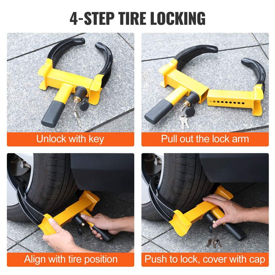 Set da 2 Bloccaruote Universali in Acciaio Resistente, Antifurto Regolabile per Pneumatici e Volanti