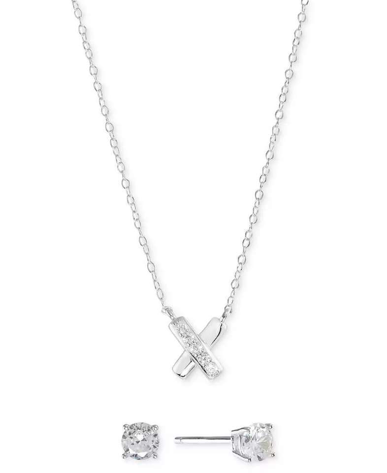 2-Pc Set di zirconi cubici X collana pendente e orecchini solitario in argento Sterling (disponibile anche in oro 14k su Sterlin