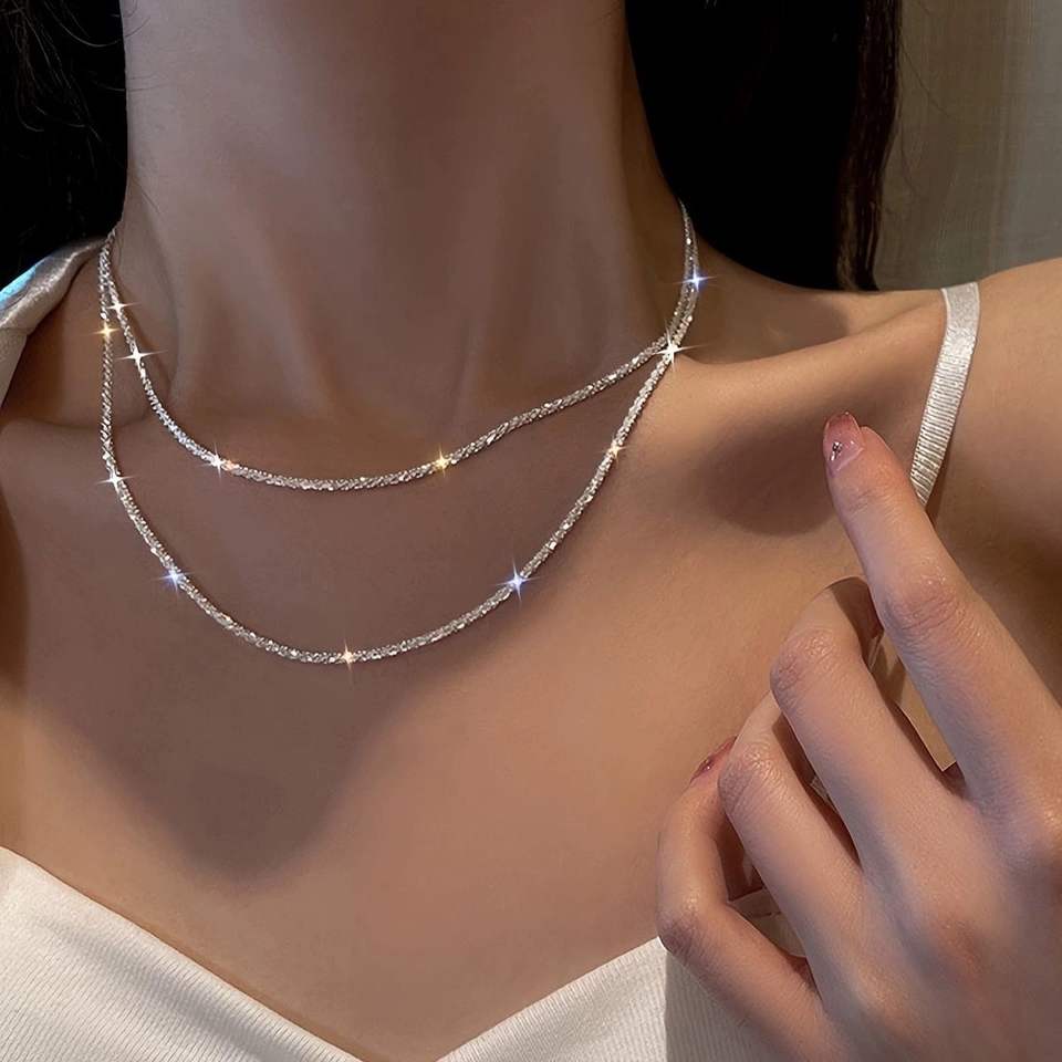 2 Pezzi Collana con Catena Base Placcata Argento 925, Catena a Osso con Chiusura, Elegante e Versatile, Ipoallergenica, Collane con Catene Sottili