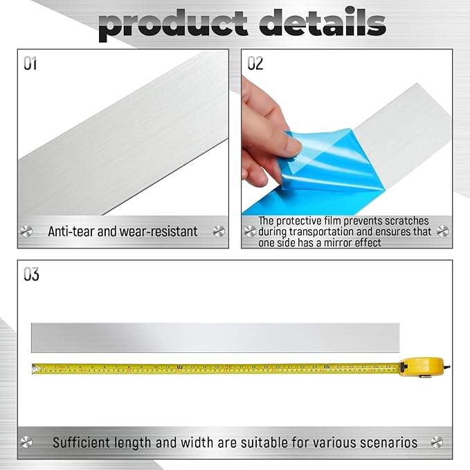 2 Pcs Stainless Steel Trim Strips Brushed Stainless Steel Metal Finishing Sheet Metal Gap Strip Filler Trim