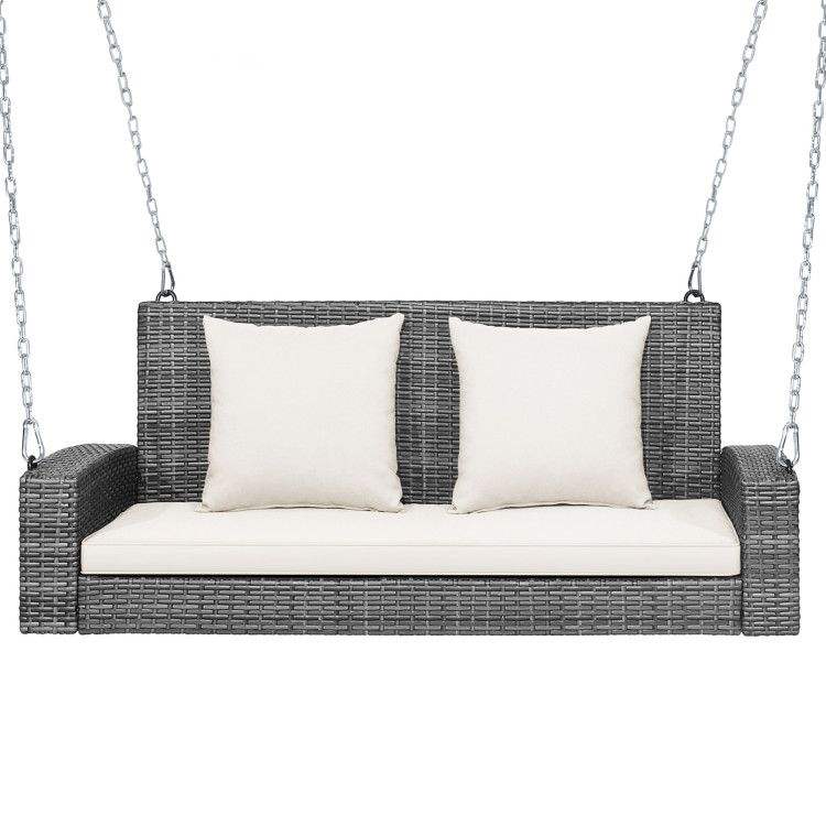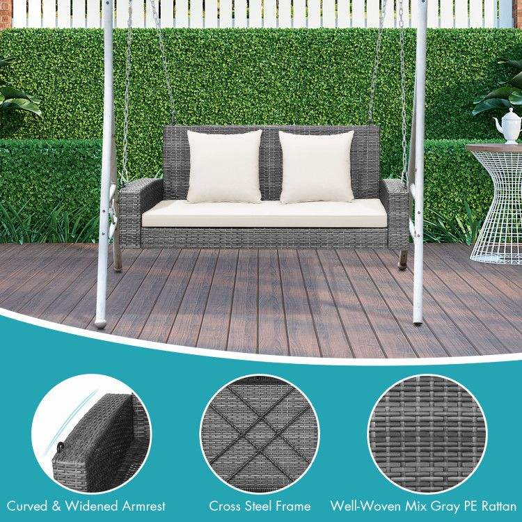 Dondolo a dondolo da esterno in vimini PE per 2 persone, capacità 800 libbre, con cuscino per il relax all'aperto