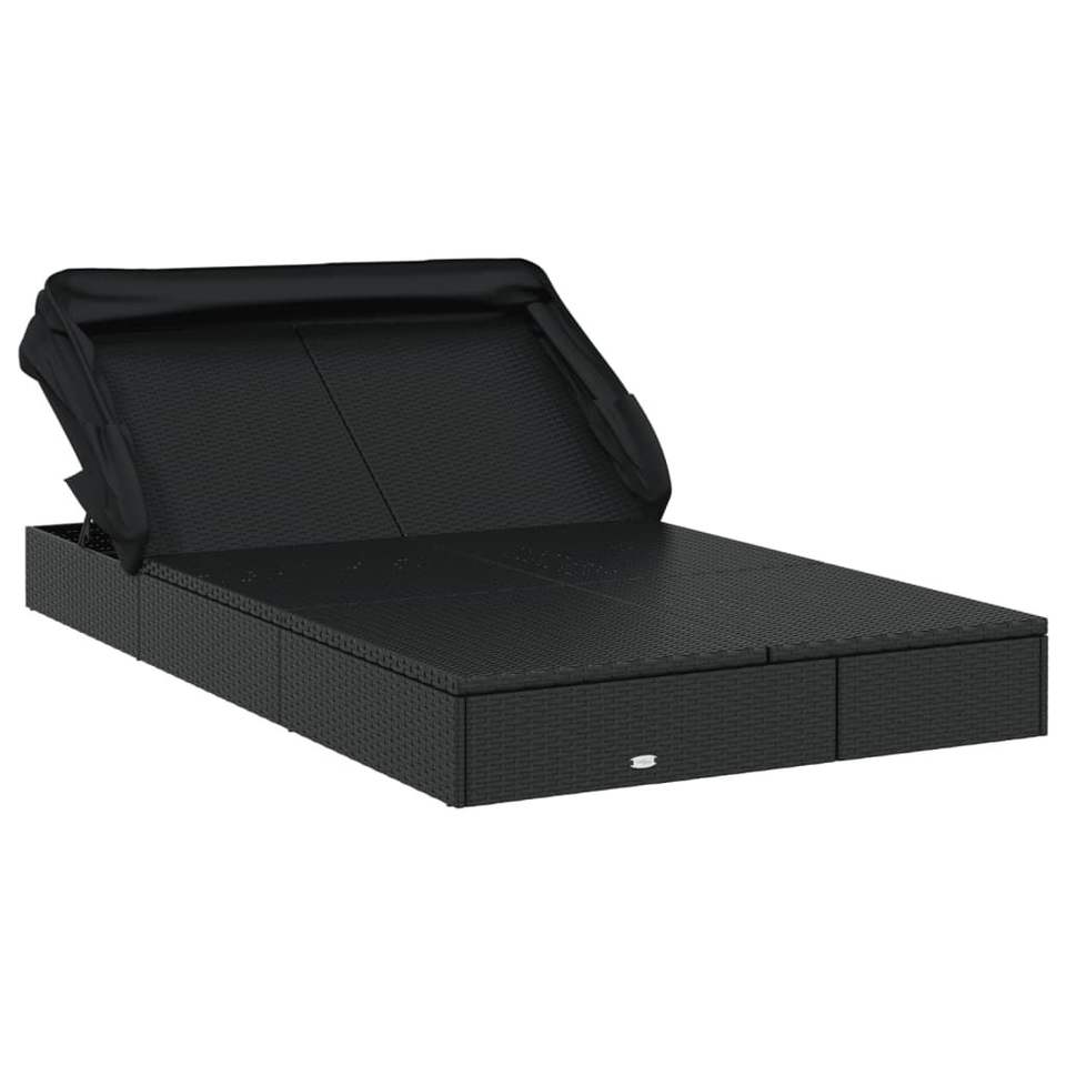 Lettino in Poly Rattan nero per 2 persone con 83.9 pieghevole sul tetto \ "x46.5 \" x38.2 \ "per rilassarsi